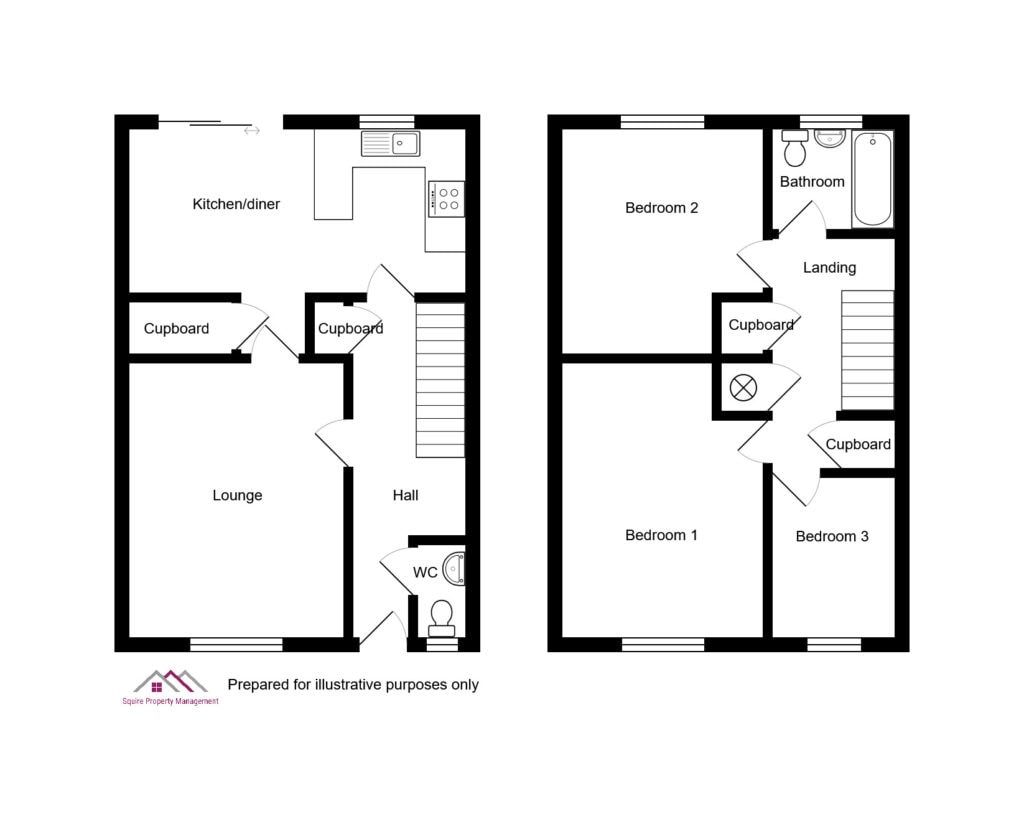 Entrance Hall: White walls and new grey carpet and storage cupboard. Leading to cloakroom, lounge, kitchen and stairs to first floor.